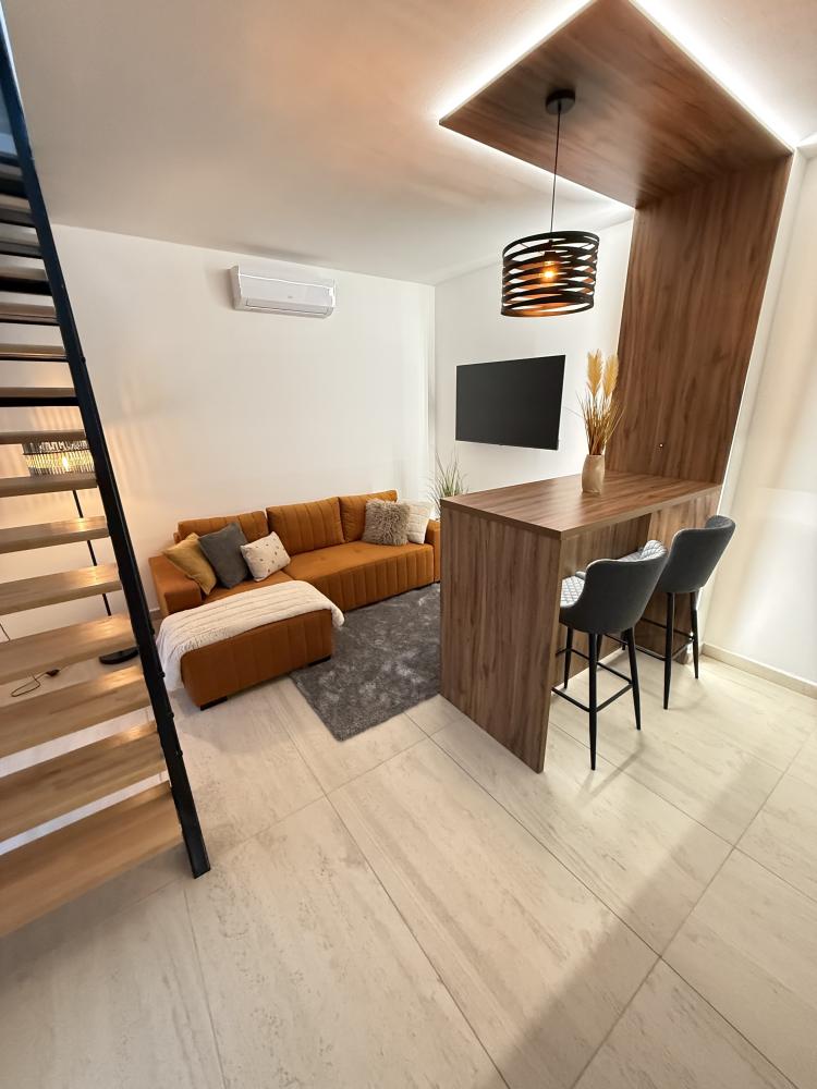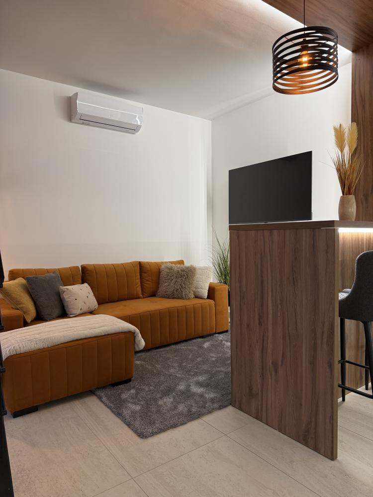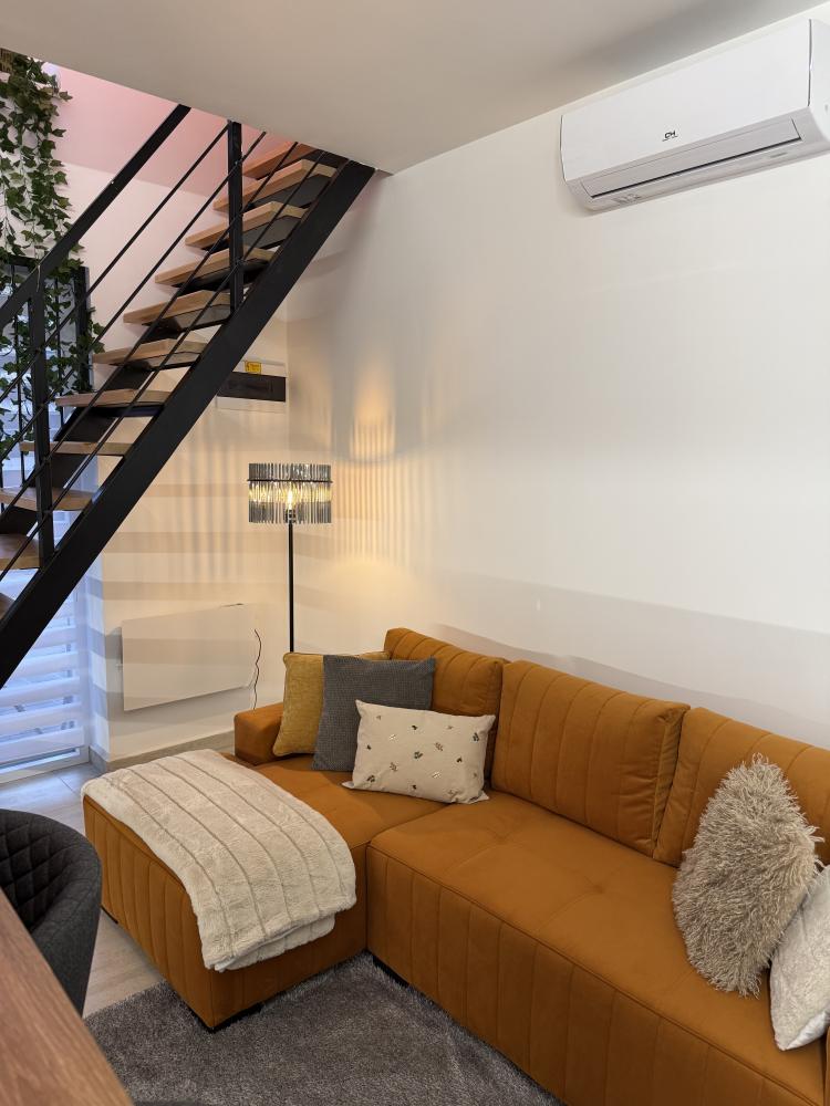Az apartman franciaággyal és egy kihúzhatós kanapéval rendelkezik. Saját konyhavál, saját fürdőszobával, elektromos vízforralóval, kapszulás kávéfőzővel, hűtővel, indukciós főzőlappal, sütővel, kenyérpirítóval, mosogatógáppel és mosógéppel rendelkezik. Nagyon jól felszerelt. Emellett terasszal, és ott kiülővel,